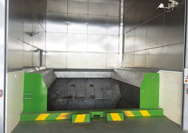 卸料口噴淋除塵除臭系統(tǒng)通過上料感應(yīng)控制,以多扇形噴水嘴均布與上料口周沿,在卸料口形成全覆蓋水膜,達(dá)到有效控塵的目的,噴酒液體中添加消毒、除味植物液,有效控制異味的散發(fā)。