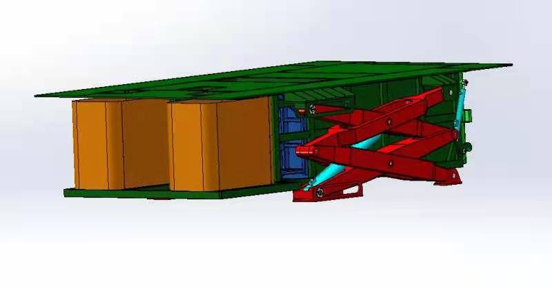 (1)舉升臂架:舉升臂架采用雙側(cè)雙層剪叉結(jié)構(gòu)。臂架均采用高強(qiáng)度鋼板、數(shù)控成型、等離子切割焊接而成,安裝于箱體兩側(cè),用于垃圾箱升降導(dǎo)向;立柱上裝有保險(xiǎn)鎖機(jī)構(gòu)。單垃圾箱舉升后可對垃圾箱進(jìn)行鎖止限位,避免對在地坑中檢修、保潔人員的危害。
